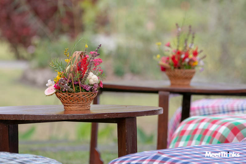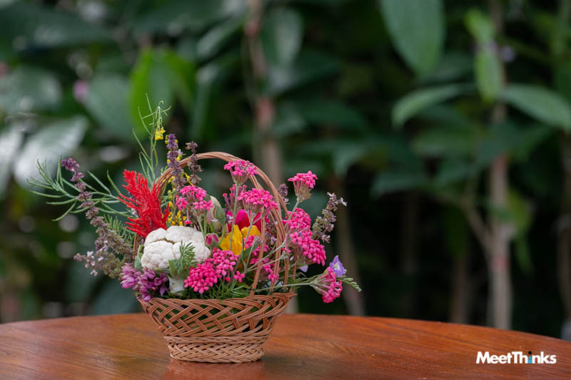 - ดอกไม้นานาชนิดภายในสวนสามพราน นำมาจัดตะกร้าเพื่อสร้างสีสันภายในงานแถลงข่าว