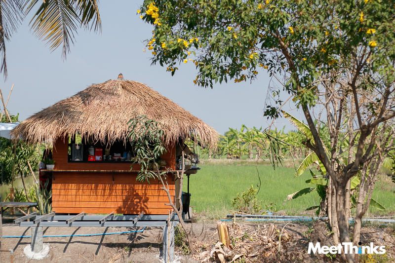 - ทางร้านมีมุมกาแฟเล็ก ๆ ริมทุ่ง