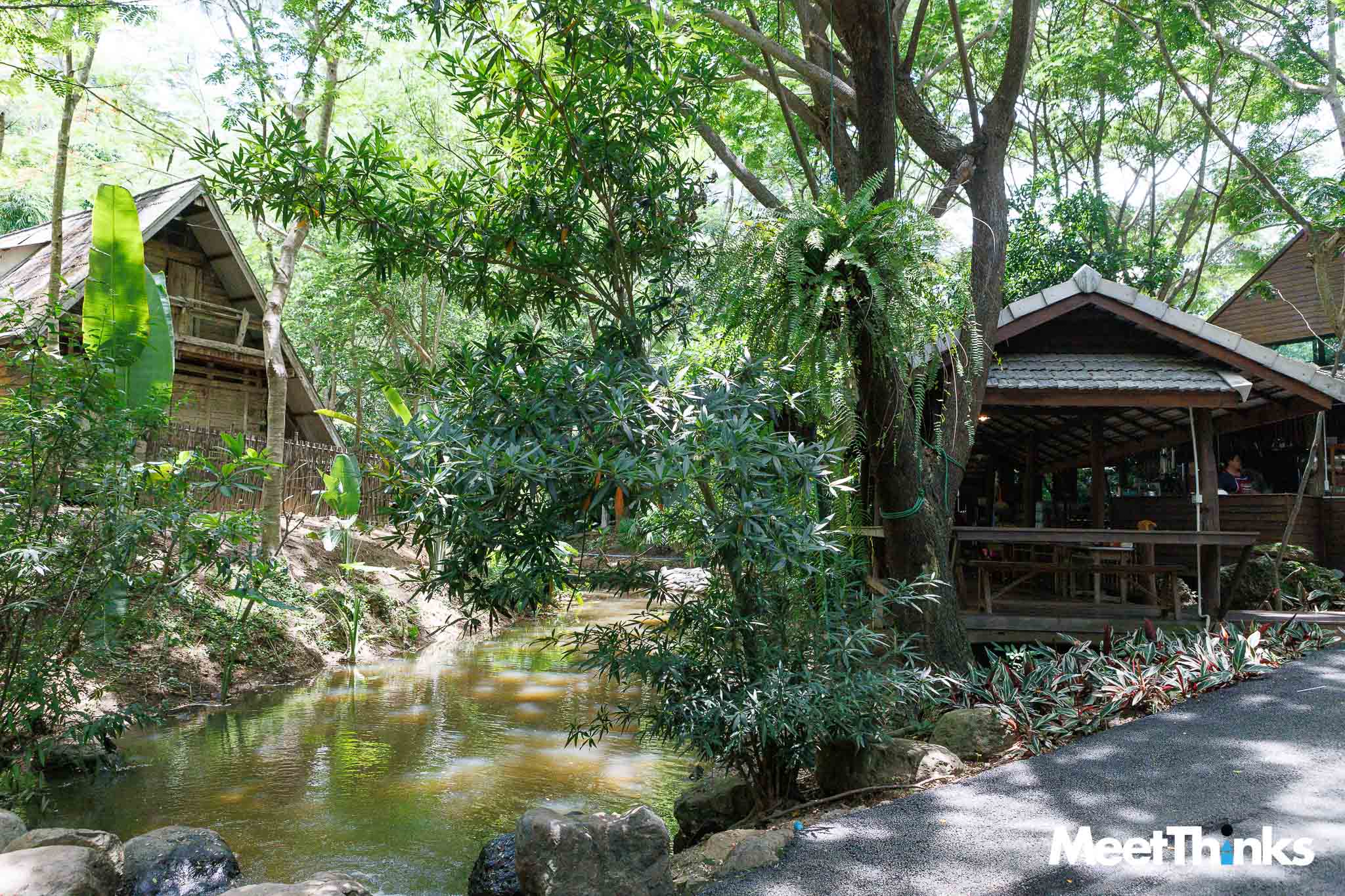 บริเวณด้านหน้าจะมีร้านกาแฟชื่อ “Café Amulet” บรรยากาศเก๋ไก๋เหมือนหมู่บ้านในญี่ปุ่น ภายในม่อนกุเวรมีลำธารไหลผ่าน มีร้านก๋วยเตี๋ยวเล็ก ๆ ให้นั่งกินชิล ๆ
