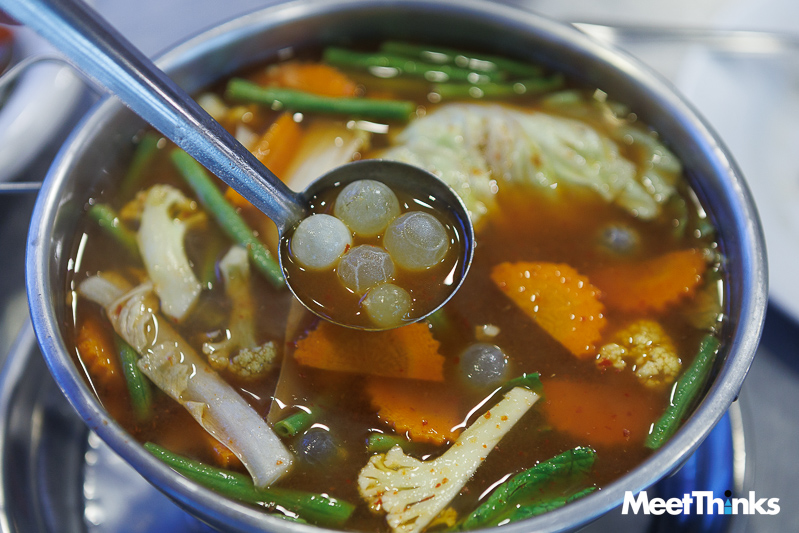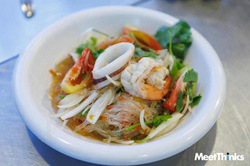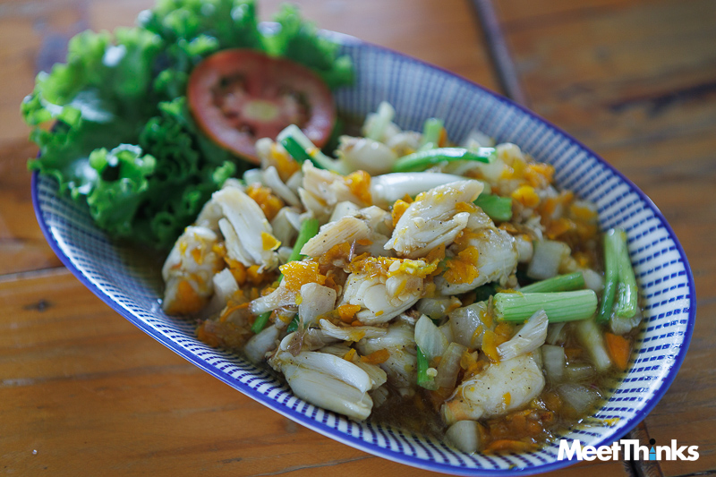 เมนูวันนี้เริ่มต้นที่ หอยเชลล์ผัดฉ่า ส้มตำปูม้า ตามมาด้วยแกงส้มไข่ปลาริวกิว ผัดไบเหลียง ที่เด็ดดวงหฤทัยมาก ๆ คือ ปลาหมึกไข่แดดเดียว ตัวไม่ใหญ่แต่ไข่แน่น ด้านยำวุ้นเส้นทะเลก็ทำมาได้ดี เส้นนุ่มหนึบ กุ้งหมึกเด้งสด รสชาติกลมกล่อมหอมมะนาวแท้ ส่วนกุ้งราดซอสมะขามตัวใหญ่สดอร่อยมากเช่นกัน