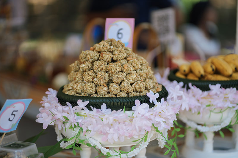 สำหรับขนมกระยาสารทเป็นขนมไทยที่ทำจากถั่ว งา ข้าวคั่ว และน้ำตาล ในแบบดั้งเดิม ขนมกระยาสารท เป็นขนมโบราณ มีความพิเศษ คือ เป็นขนมสำหรับงานบุญประเพณีของคนไทย โดยชาวบ้านจะกวนกระยาสารท มาทำบุญอุทิศส่วนกุศลให้แก่เครือญาติที่ล่วงลับไปแล้ว จนกลายเป็นประเพณีสารทไทย