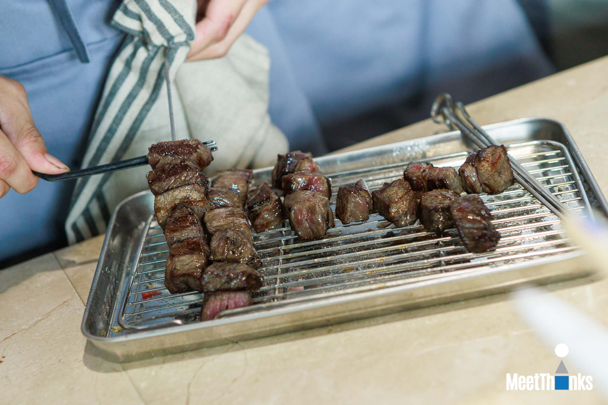 Wood Fired Australian Wagyu Angus Beef Flank ความสุกระดับ Medium