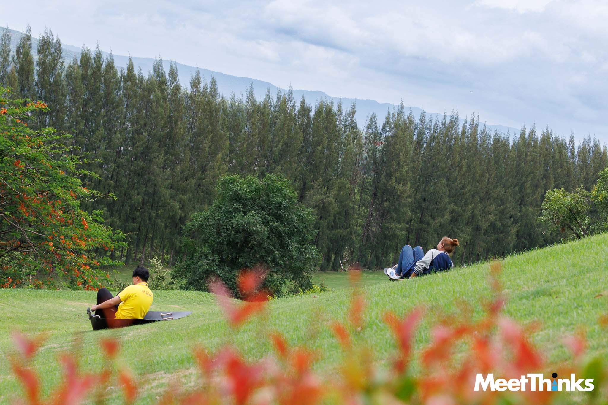 ลานหญ้าที่ลาดเอียง เป็นจุดวัดใจเบา ๆ กับ “สไลเดอร์แม่เมาะ” ต้นเด็ก ๆ หลายคนอาจจะเคยเล่นอะไรแบบนี้ บ้างก็เอากาบหมากหรือกาบมะพร้าวมาปูรองนั่ง แต่ที่เหมืองแม่เมาะจะมีแผ่นรองนั่งที่แข็งแรง ส่วนการสไลด์ลงมาก็ไม่ชันมาก และเป็นเพียงระยะสั้น ๆ เด็ก ๆ เล่นได้ ผู้ใหญ่ก็อดไม่ได้ที่จะขอลองเล่น
