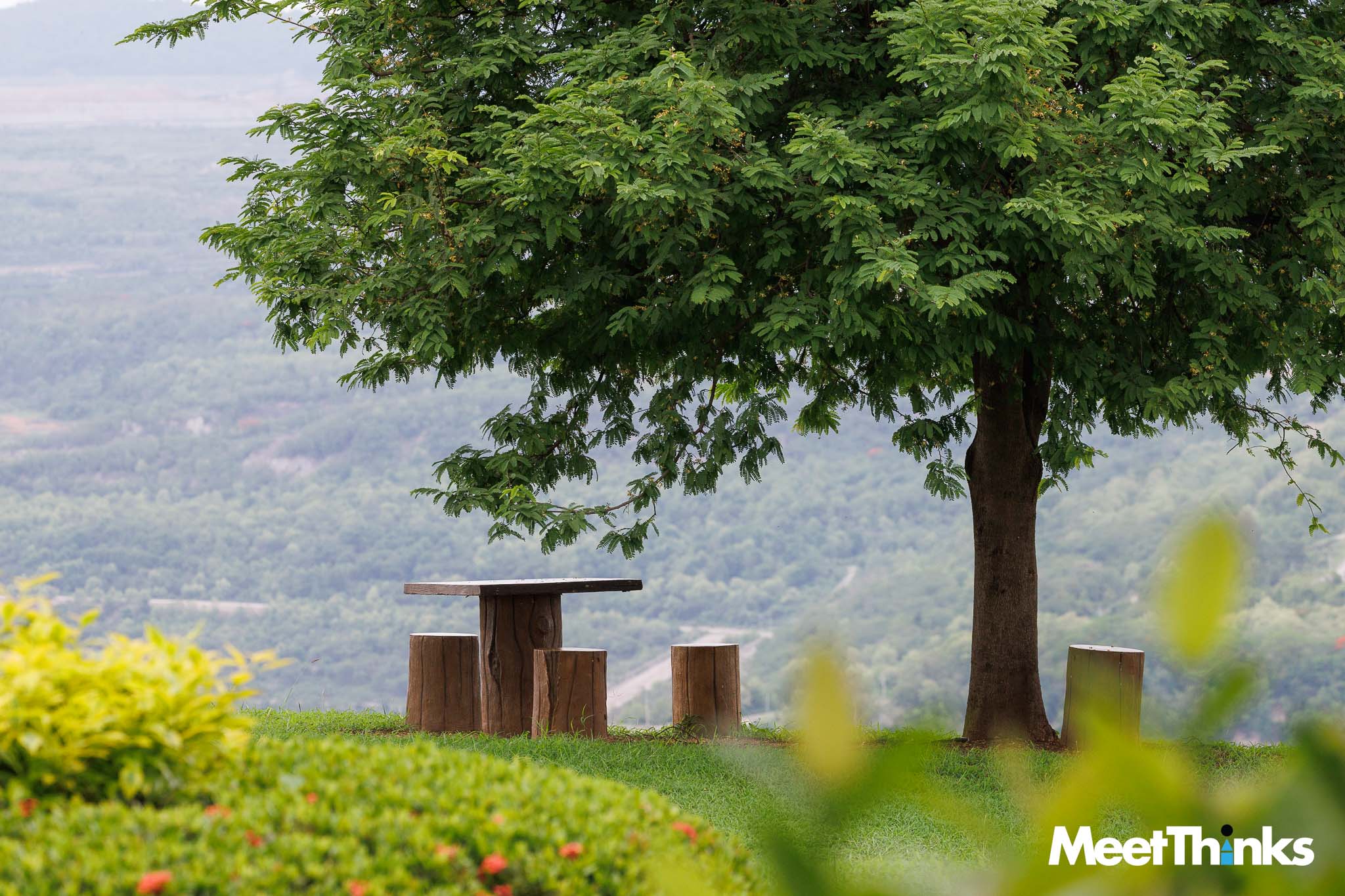 ยอดดอยแห่งนี้มีลานกว้าง มองเห็นทิวเขาที่รายล้อม กับผืนป่าขนาดใหญ่ นอกจากที่นั่งแวะพักตามจุดต่าง ๆ ยังมี “สกายวอล์ก” ที่ยื่นออกไปในผืนป่า มองเห็นแหล่งน้ำและภูเขาที่เรียงราย