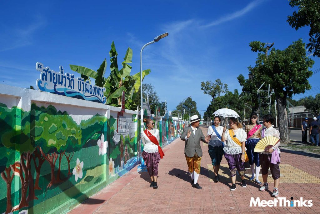 แต่งตัวสวยหล่อกันแล้ว ก่อนจะขึ้นเขาวัง อันเป็นสถานที่จัดงาน เราแวะเดินเล่นกันที่ Panorama Street Art ที่ยาวที่สุดในจังหวัดเพชรบุรี บริเวณ ถ.ดำรงรักษ์ (ใกล้วังบ้านปืน)