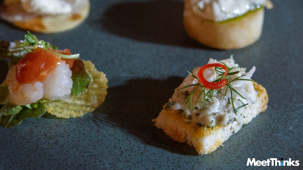 เป็นเมนูอาหารว่างสไตล์คานาเป้ที่ผสมผสานความนุ่มนวลของแพนเค้กแบบรัสเซีย (Blini) เข้ากับรสชาติเข้มข้นของมูสปลาลมควันที่ประยุกต์ใช้ปลาไทยได้อย่างสมบูรณ์แบบ