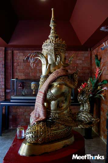 ภายในธรรมสถานเมืองกระบี่ ยังจัดแสดงพุทธศิลป์ต่าง ๆ อาทิ พระพุทธรูปโบราณ รวมทั้งงานศิลปะของอาจารย์ชัยรัตน์ที่มีความงดงาม รวมทั้งเทริดโบราณอันเป็นที่เคารพของเหล่าลูกหลานมโนราห์ทั้งหลาย