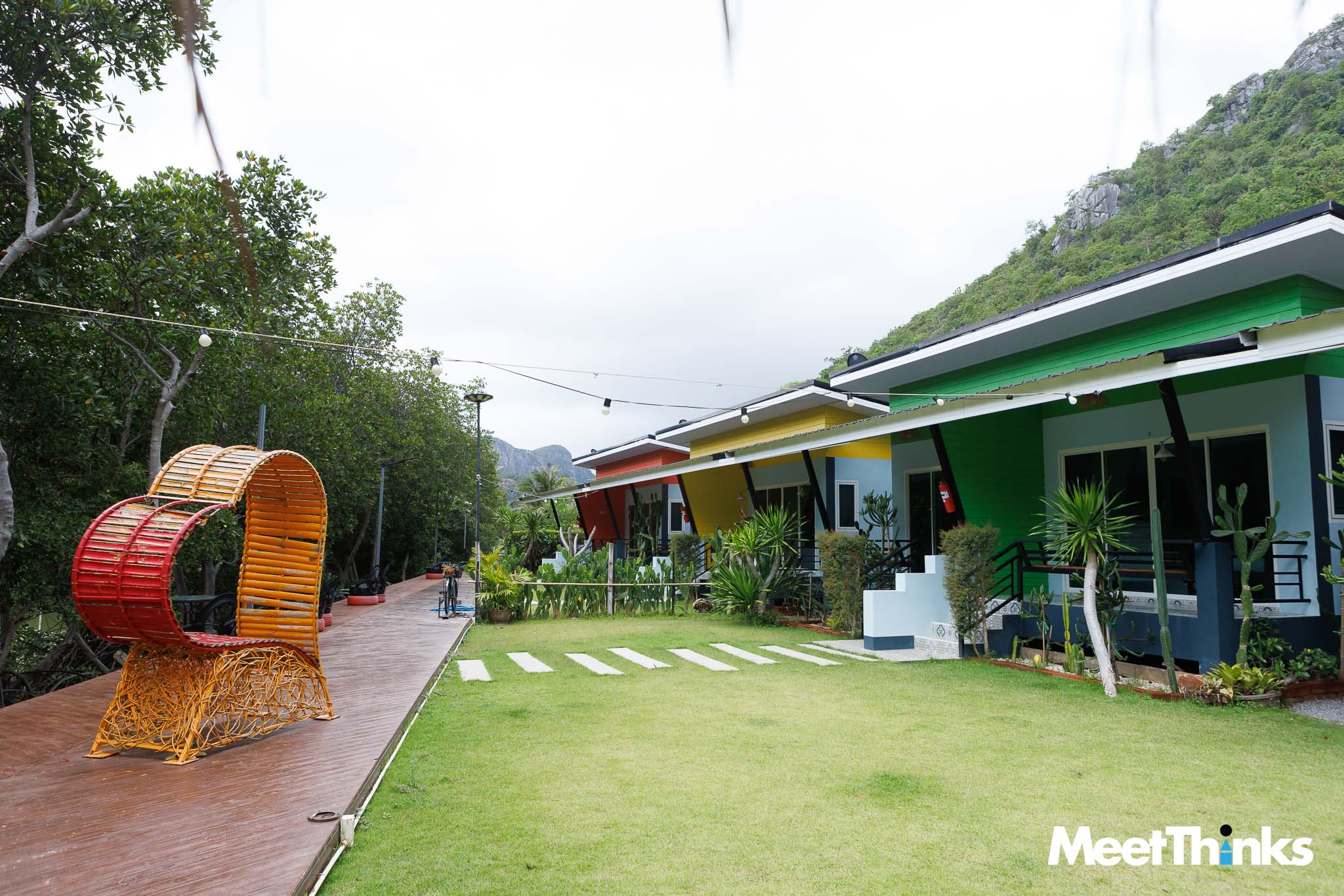 สามร้อยยอดบีชรีสอร์ท ที่พักโทนสีขาว-เขียว ริมชายหาด