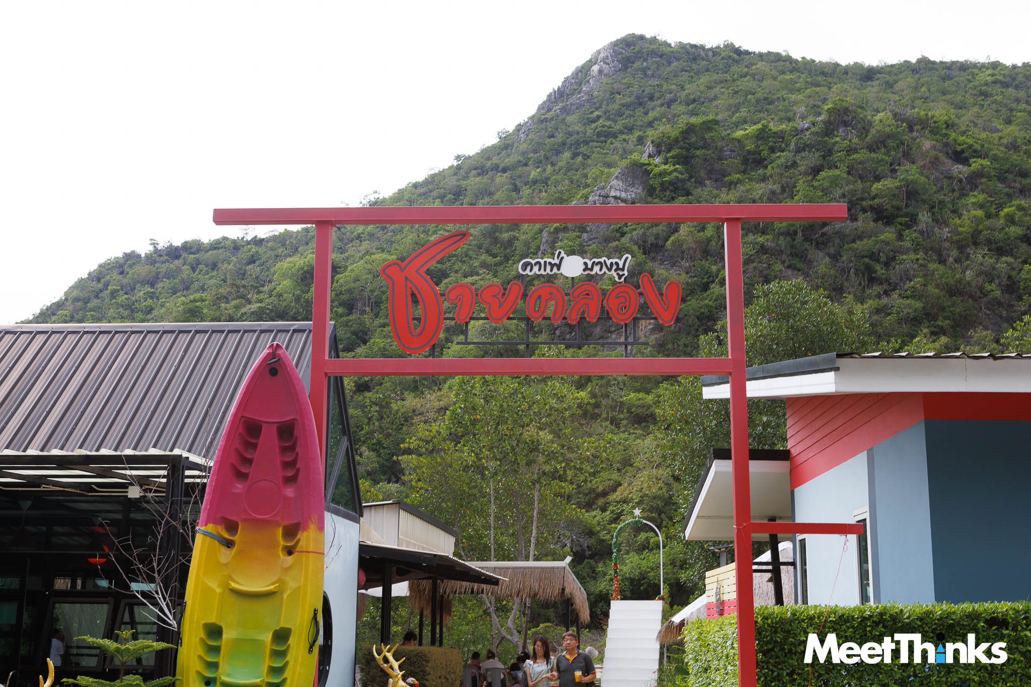 บ่ายนี้เราจึงมาปักหลักกันที่ “ชายคลองคาเฟ่” ริมคลองบางปู ซึ่งเป็นทั้งร้านอาหารและที่พักเล็ก ๆ รายล้อมไปด้วยทิวเขา มาถึงประจวบก็ลอง “สับปะรดปั่น” เป็นเครื่องดื่มหอมหวานชื่นใจ ชมคลอง ชมเขา กันอย่างผ่อนคลาย