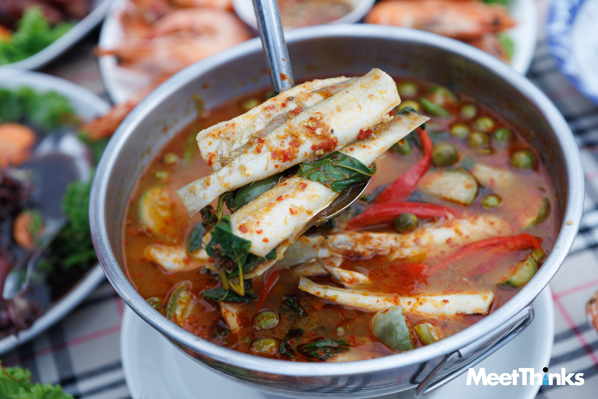 ทางร้านมุ่งเน้นคัดสรรวัตถุดิบจากชุมชน โดยเฉพาะอาหารทะเลในพื้นที่ซึ่งการันตีความสด เมนูไฮไลต์ที่ได้ชิมวันนึ้คือ หมึกต้มหวาน หรือ หมึกน้ำดำ แกงส้มใบกะเพรา แกงคั่วสับปะรดไข่แมงดา ฯลฯ