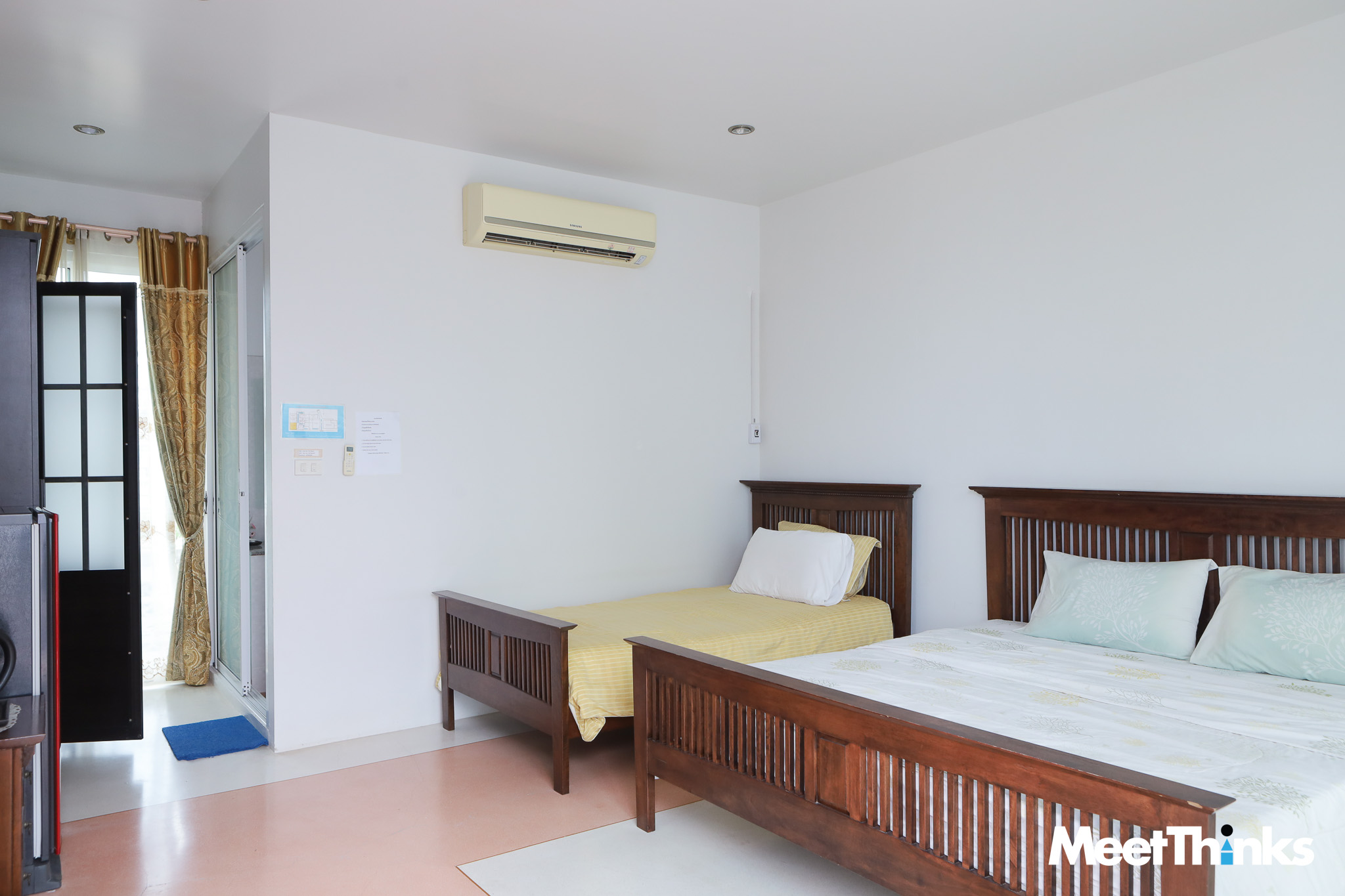 ในทริปนี้เราเข้าพักที่ “สามร้อยยอดบีชรีสอร์ท” ที่พักเล็ก ๆ ของคนในท้องถิ่น ห่างจากผืนทรายแค่เพียงถนนกั้น มีความเรียบง่าย สะอาดสะอ้าน เติมความสะดวกสบายแค่พอจำเป็น ด้วยตู้เย็น เครื่องปรับอากาศและเครื่องทำน้ำอุ่น อาคารทรงไทยประยุกต์มี 2 ชั้น ห้องพักมีให้เลือกตั้งแต่ห้อง 1 เตียง 2 เตียง และ 4 เตียง พักได้ตั้งแต่ 1 – 8 คน มีร้านอาหารและคาเฟ่เล็ก ๆ ให้บริการ