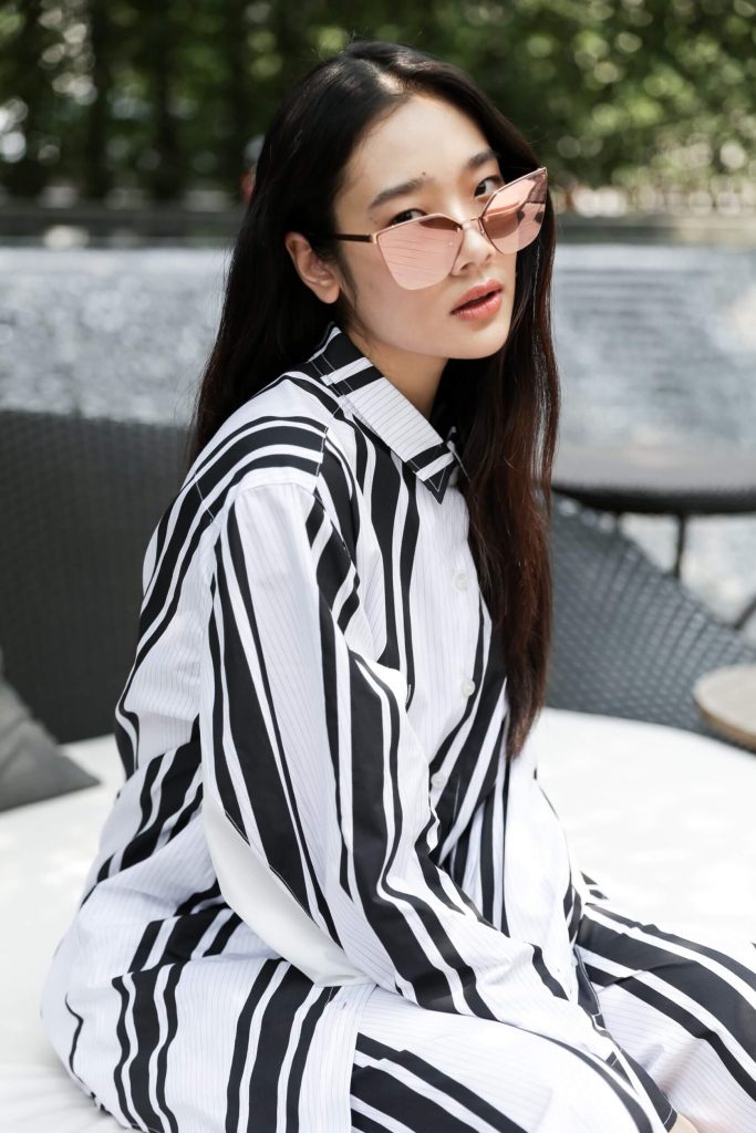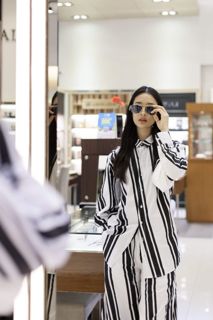 เพื่อเสริมลุคให้ซัมเมอร์นี้เก๋และเท่ขึ้นในแบบที่ยังคงเสน่ห์ความเป็นตัวเองได้อย่างแท้จริง “ออกแบบ–ชุติมณฑน์ จึงเจริญสุขยิ่ง” นางแบบหน้าเก๋ผู้นิยมการแต่งตัวแบบสบายๆ แต่เลือกแว่นกันแดดเป็นไอเท็มสำคัญช่วยคอมพลีตลุคให้กับการแต่งตัวในแต่ละวัน ได้มาร่วมแนะนำวิธีการเลือกแว่นให้ซัมเมอร์นี้ว้าวมากขึ้น ว่า “เป็นคนที่มีแว่นกันแดดเยอะมากพอสมควร จะเลือกซื้อไว้หลายๆ แบบหลายๆ ลุคเพื่อที่จะได้แมทช์กับเสื้อผ้าได้หลายสไตล์ แต่สิ่งที่สำคัญที่สุดแต่ละแบบที่เลือกจะต้องเข้ากับรูปหน้าของเราเอง ซึ่งทรงแว่นที่ชอบที่สุดคือทรงเหลี่ยม เป็นทรงที่ใส่ง่าย ใส่กับเสื้อผ้าแบบไหนก็ได้ แต่งตัวสบายๆ ไปทะเล หรือใส่กับชุดว่ายน้ำอาบแดดก็ช่วยเพิ่มความเก๋ให้ได้ สำหรับคนที่อยากให้ ลุคออกมาไม่หวือหวา แต่มีความเท่ แว่นกลมเป็นทรงเหมาะที่สุด ส่วนคนแฟชั่นจ๋า แต่งตัวจัด แว่นกรอบใหญ่โอเวอร์ไซส์ หรือแว่นแฟนซีก็ช่วยทำให้ลุคมีความเปรี้ยวขึ้นอีก”