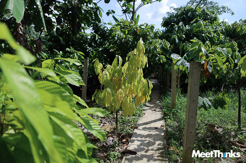 ออกจากศูนย์เรียนรู้ ขับรถไปประมาณ 5 นาที มุ่งหน้าไปชมสวนโกโก้ เชื่อว่าสายกรีน สายเฮลท์ตี้  น่าจะชอบที่นี่ โฮมลอดจ์ไทยอวล บ้านพักริมบึงท่ามกลางสวนโกโก้และแมกไม้นานาพันธุ์