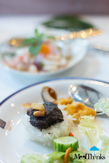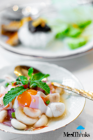 เปิดบรรยากาศแห่งการสร้างสรรค์ ปลุกความสดชื่นด้วย “น้ำมะปี๊ดโซดา” หอมเย็นชื่นใจ  จากนั้น ร้าน Whispering Café  โดยเชฟแป๊ะ-จาตุรงค์ ขุนทอง ได้นำเสนอ “ข้าวยำดอกไม้ใบไม้ในสวน” ที่ใช้พืชผักสมุนไพร และดอกไม้ จากแปลงเกษตรอินทรีย์ของทางร้าน เสริฟมาพร้อมข้าวซ้อมมือหอมมะลิ ราดด้วยน้ำบูดูเข้มข้นจากปัตตานี เป็นเมนูแห่งความสดชื่น ทั้งจากรับรู้ด้วยสายตาและการรับรสที่จี๊ดจ๊าดกำลังดี