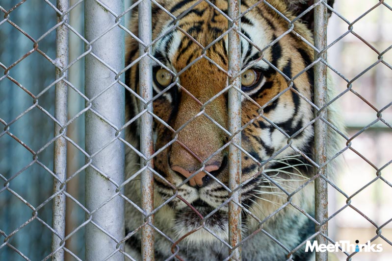 วันนี้ได้เจอกับ “ทองแดง” เสือโคร่งตัวงาม มันออกมาเดินเล่นในกรง ต่างจากตัวอื่น ๆ ที่มักจะนอนอยู่ในมุมของมัน ได้เห็นว่าทองแดงเดินขากะเผลก ภายใต้แววตาอันแข็งกร้าวจึงยังดูน่าเห็นใจ เดินไปทางบ่อนาก ทันทีที่ได้ยินเสียง พวกมันมายืนชะเง้อร้องขออาหาร เห็นแล้วรู้สึกถึงแววตาที่เว้าวอนเหลือเกิน