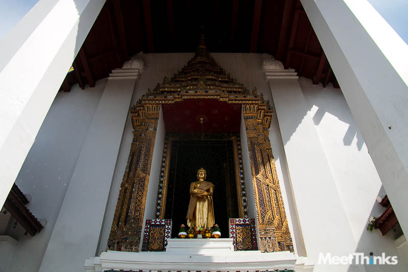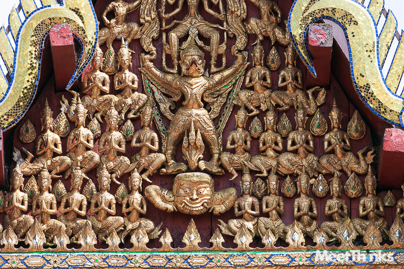 เช้าวันใหม่เดินทางสู่ “วัดหน้าพระเมรุ” ตั้งอยู่ริมคลองสระบัวด้านเหนือของคูเมือง (แม่น้ำลพบุรีเก่า) เป็นวัดเก่าแก่ของกรุงศรีอยุธยาที่ยังคงสภาพสมบูรณ์ สิ่งสำคัญที่ปรากฏภายในวัดนี้ คือ พระอุโบสถและพระพุทธรูปประธานทรงเครื่องใหญ่ สันนิษฐานว่าได้รับการบูรณะครั้งใหญ่ในรัชกาลของสมเด็จพระเจ้าปราสาททอง หน้าบันของพระอุโบสถเป็นไม้แกะสลักปิดทองที่แสดงรูปนารายณ์ทรงครุฑยุดนาคประทับราหูแวดล้อมด้วยเหล่าเทวดา ด้านหน้าพระอุโบสถมีเทวดาแวดล้อม 26 องค์ด้านหลังพระอุโบสถมีเทวดาแวดล้อม 22 องค์ รวมเทวดา 48 องค์
