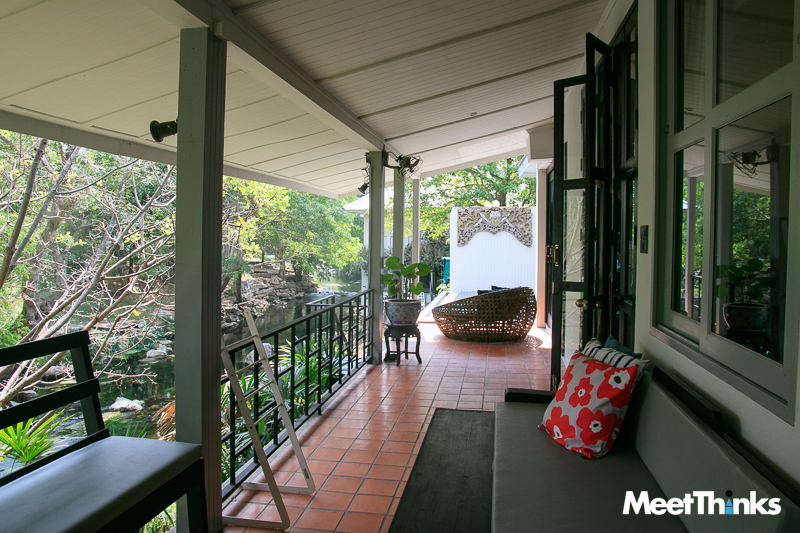 “ผมว่าคุณไอ๋เขาใจถึงมากนะ กับการที่ยอมทาเรือนไทยสีขาวบนไม้สักทั้งหลัง ทำหลังคาเป็นสีเทา ปูนที่เคยสีเหลืองเปลี่ยนเป็นสีขาว กระเบื้องห้องน้ำเปลี่ยนเป็นสีขาวดำ ทำให้ลุคโมเดิร์นขึ้นมาเพื่อตอบโจทย์ลูกค้าคนรุ่นใหม่”